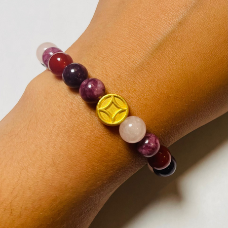 Purple Jade Bracelet with Gold Lotus Charm