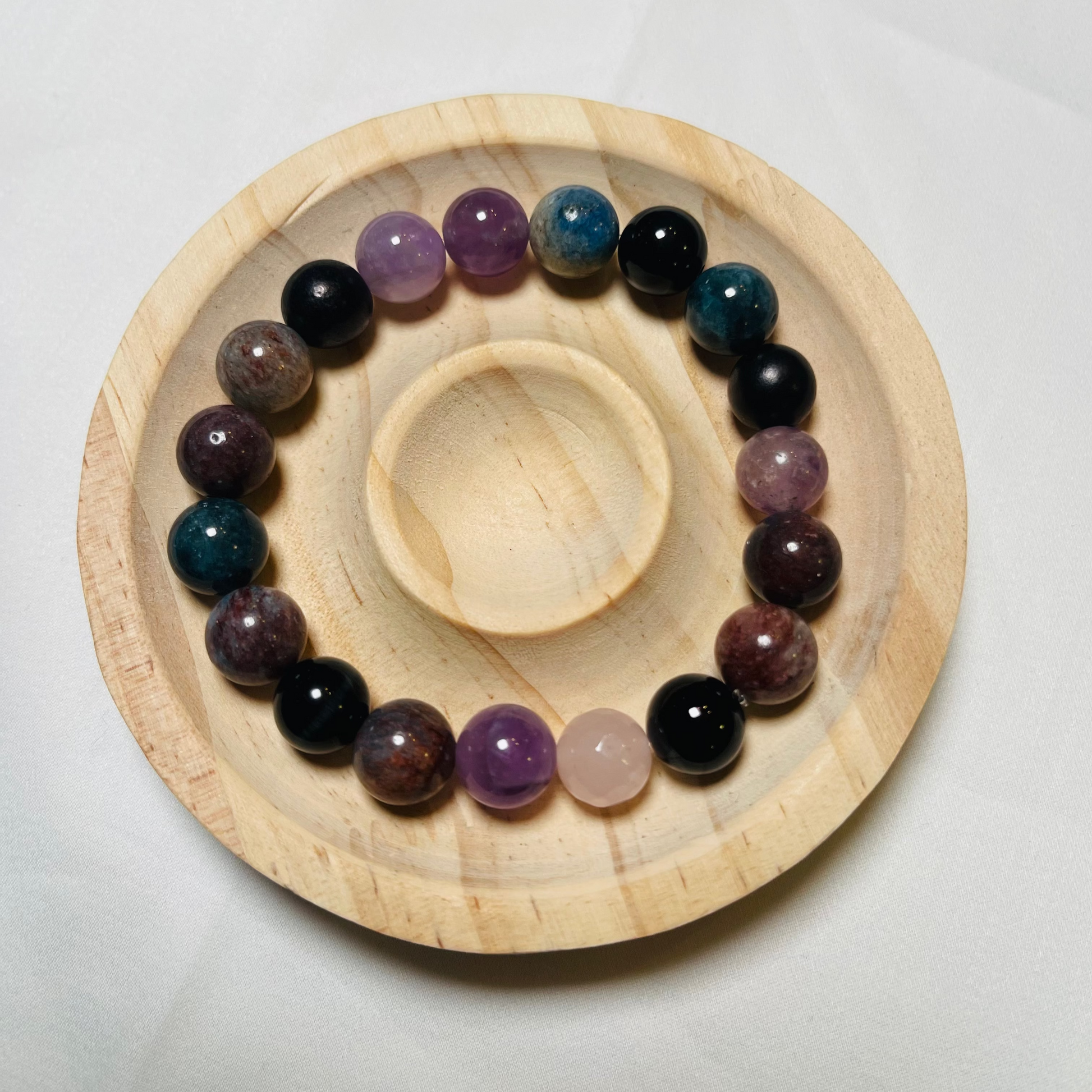 Add a splash of color and energy to your wrist with this playful multi color bracelet. Featuring 10mm beads of sodalite, amethyst, onyx, and more, strung on a comfy 7-inch band, it’s the perfect way to mix mystery and style. Whether you’re feeling lucky blue, regal purple, sleek black, or cool gray, this bracelet brings a joyful pop to any outfit.